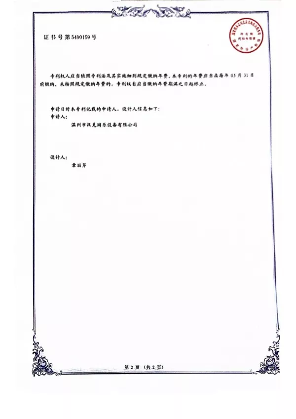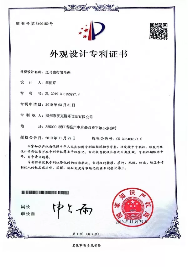 ამავდროულად, როგორც ჰენკის საკუთრების პროდუქტმა, 2019 წელს მივმართეთ დიზაინის საპატენტო სერტიფიკატს Zebra Shaped Percussion Instrument-ის სადგამზე და მივიღეთ თანხმობა ჩინეთის ინტელექტუალური საკუთრების ოფისიდან.